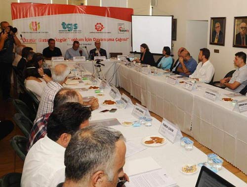 “İktidar, medyayı bölmek, hedef göstermek için sistematik bir çalışma yürütüyor. Basın İş Kanunumuzu değiştirmek için çabaları var. Türkiye Gazeteciler Konfederasyonu aracılığıyla kendi denetimlerinde geçmişin Türk Basın Birliği örgütlenmesini oluşturmayı planlıyorlar. Hazırladıkları gazeteciliğin standartlarını koyan yönetmelikle iktidara uygun tek tip gazeteci yetiştirmenin çalışmasını yürütüyorlar. Biz; Türkiye Gazeteciler Cemiyeti, Türkiye Gazeteciler Sendikası, Çağdaş Gazeteciler Derneği ve DİSK Basın-İş olarak, ’Özgür Basın Özgür Toplum İçin Dayanışma’ toplantılarını düzenli olarak yapacağız. Gazetecileri dayanışmaya, halkın haber alma hakkı için mücadele edilmesine davet etmeye devam edeceğiz. 10 Ekim’de Ankara’da sendikaların barış ve demokrasi konulu yürüyüşüne de TGC olarak destek vereceğiz.”