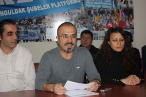 SES Zonguldak Şube Başkanı Barış Oymak, KESK’e Bağlı sendikaların Şube Başkan ve yöneticileriyle birlikte KESK Şubeler Platformu’nda basın açıklaması yaptı.