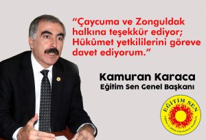 Çaycuma’da görev yapan iki sendika yöneticimizin ihraç edilmiş olması tesadüf değildir. Yöneticilerimiz Çaycuma’da sayıları oldukça fazla olan sıbyan mekteplerine karşı sendikamızın temel eylem ve etkinliklerinden birisi olan “okul öncesi eğitimin zorunlu olması”na yönelik çok ciddi bir çalışma yürütmüşlerdir. Çaycuma Milli Eğitim Müdürlüğünün yılbaşını yasaklaması gibi laik ve bilimsel eğitim karşıtı birçok uygulamaya Eğitim Sen kimliği ile demokratik tepkilerini göstermişler ve yaptıkları etkili çalışmaları ile hedef haline gelmişlerdir.