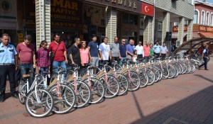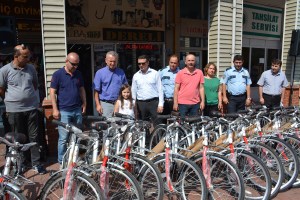 Çaycuma Belediyesi, vatandaşlarını bisiklet sahibi yapmaya devam ediyor. Belediye son olarak 43 emniyet mensubuna bisiklet dağıttı. Emniyet mensupları Çaycuma Belediyesi önünde yapılan törenle bisikletlerini teslim aldı. Öte yandan konuyla ilişkin bilgiler veren Çaycuma Belediye Başkan Bülent Kantarcı şu anda her türlü standarda sahip olarak yaptıkları bisiklet yolu uzunluğunun 11 kilometreyi geçtiğini açıkladı. Çaycuma’da bisiklet yolu girmeyen mahalle ve sokak kalmayacağını söyleyen Kantarcı sözlerine şöyle devam etti: