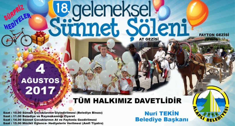 Alaplı Belediyesi Geleneksel hale getirdiği Sünnet Şöleni 4 Ağustos’ta gerçekleştiriliyor.Alaplı Belediye Başkanı Nuri Tekin Tüm halkı şölene davet etti