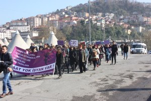 Zonguldak’ta, 25 Kasım Kadına Yönelik Şiddete Karşı Mücadele Günü’nde “şiddete hayır” yürüyüşü yapıldı. Zonguldak’ta, İstasyon Caddesi’nde başlayan yürüyüşte kadınlar, ellerinde pankartlarıyla “Düş peşine eşitsizliğin, ayrımcılığın”, “Şiddetin ‘aması’ olmaz”, “Erkek adalet değil, gerçek adalet istiyoruz”, “Kadına şiddet utançtır” şeklinde sloganlar atarak Madenci Anıtı’na yürüdü.