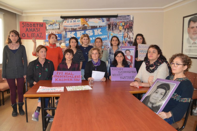 Gökçebey’de eski eşini ve kızını öldüren, oğlunu da ağır yaralaması sonrasında Zonguldak Kadın Platformu basın açıklaması yaptı. KESK Şubeler Platformu Binasında gerçekleşen Basın toplantısında ,Kadın Platformu adına Lale Tetik’in “02.12.2017 tarihinde Zonguldak’ın Gökçebey ilçesinde Gülay Gökdemir adlı bir kadın arkadaşımız boşandığı eşi tarafından silahla katledildi. Eski eşinin şiddetiyle hem kadın arkadaşımız hem de kızı hayatını kaybetmiş, oğlu da yaşam mücadelesi vermektedir. Geçtiğimiz haftalarda yine erkek şiddetinden kaçan Nazlı Uyanık katledilmiş bununla birlikte Necla Sağlam gibi ardı kesilmeyen nice kadın cinayetlerine şahit oluyoruz.