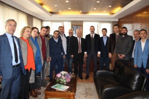 Adalet ve Kalkınma Partisi (AKP) Merkez İlçe Başkanı Mustafa Çağlayan ve yeni yönetim kurulu üyeleri, Zonguldak Belediye Başkanı Muharrem Akdemir’i makamında ziyaret etti. AKP Merkez İlçe Başkanı Mustafa Çağlayan, Zonguldak için kendilerine düşen görevi sonuna kadar yapacaklarını ifade ederek, birlik beraberlik mesajı verdi. Çağlayan; “Bugün Sayın Belediye Başkanımızı yeni yönetim kurulu üyelerimiz ile birlikte ziyarette bulunuyoruz. Daha önce kıymetli meclis üyeleri ile birlikte Belediye Başkanımız bizlere hayırlı olsun ziyaretinde bulunmuştu. Buralar hizmetin adresidir. Bizde belediye meclisinde başkanımız ve belediye meclis üyelerimiz ile birlikte üç seneden beri mesai harcıyoruz. İlişkilerimiz düzeyli ve seviyeli olmuştur. Zonguldak’ın menfaatine göre hareket etmişizdir. Bundan sonrada şehrimizin menfaatine ortak hareket edeceğiz. Ne zaman desteğe ihtiyaçları olursa bizler varız. Bundan sonraki tüm çalışmalarda tek ortak gayemiz Zonguldak’tır. Şehrimizin daha iyi şartlara gelmesi için elimizden geleni yapacağız. Hangi projede yanında olmamızı isterse, bizler başkanımıza destek oluruz. Buradan tekrar kendilerine teşekkür ediyorum.” şeklinde konuştu.