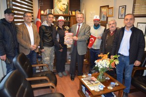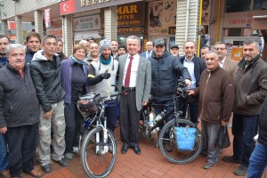 Çaycuma Belediye Başkanı Bülent Kantarcı, Filyos’ta tesadüfen karşılaştığı çifte ilgi göstererek, Çaycuma’ya da davet etti. Kantarcı, belediyenin önünde karşıladığı çifti, bir süre makamında ağırladı. Ziyarette konuşan Cecile Streit, kendilerine sıcak ilgi gösteren Başkan Kantarcı’ya teşekkür etti. Streit, “Türk insanı çok misafirperver ve sıcakkanlı. Bizlere her konuda yardımcı oldular. Ülkeleri görmek, insanları tanımak ve o ülkenin yapısını ve kültürlerini öğrenmek için bisikletle yola çıktık. 4 aydır yollardayız. 7 ülkeyi bisikletle geçtik. Çaycuma’ya kadar 5 bin 200 kilometre yol kat ettik. Buraya kadar hiçbir problem olmadan geldik. Çok memnunuz. Başkanın davetiyle geldiğimiz Çaycuma’da çok şaşırdık. Sanki bir Avrupa kenti gibi. Bisiklet yolları mükemmel. Bundan da çok etkilendik. Rotamız üzerinde olmadığı halde ‘Bir de Çaycuma’yı görün’ diyerek davet eden Başkan Kantarcı’ya teşekkür ediyoruz. İyi ki rotamızı değiştirip Çaycuma’yı görmüşüz” dedi.