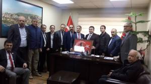 CHP il Başkanı Umut Başoğlu’na Mustafa Kemal Atatürk’ün fotoğrafının yer aldığı poster ve Türkiye Kamu-Sen’in 2018 yılı takvimini hediye eden Kadir Bacıoğlu, bu şehrin uzlaşıya, birlik ve beraberliği ihtiyacının olduğunu ifade etti.