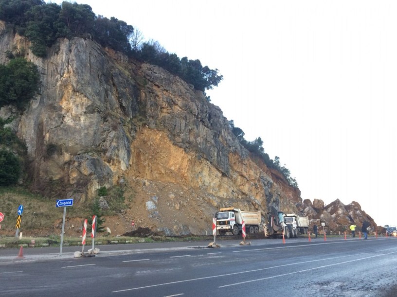 Facianın eşiğinden dönüldü, Zonguldak’ta dün öğlen saatlerinden itibaren etkisini sürdüren sağanak yağış heyelanı da beraberinde getirdi. Zonguldak-Ereğli Karayolu’nun BEÜ Tıp Fakültesi Hastanesi yakınlarındaki bölümünde heyelan meydana geldi. Sabah saat 05:00 sıralarında meydana gelen heyelan nedeniyle yolun bir bölümü ulaşıma kapandı. Heyelanın ardından Karayolları ekipleri bölgeye gelerek çalışma başlattı. Öte yandan heyelan sırasında yoldan geçen araçların olmaması da sevindirdi.