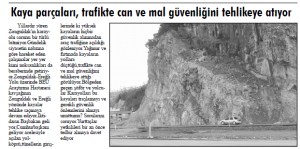 Kaya parçaları, trafikte can ve mal güvenliğini tehlikeye atıyor