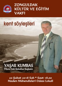 ZOKEV’in düzenlediği “Kent Söyleşileri” dizisinin şubat ayı konuğu Filyos Eski Belediye Başkanı Yaşar Kumbas olacak