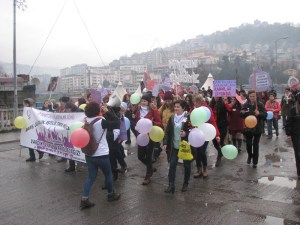 8 Mart Dünya Emekçi Kadınlar Günü’nde Zonguldak Merkez İlçe’de Zonguldak Kadın Platformu yürüyüş ve basın açıklaması düzenledi. İstasyon Medyanı’nda toplanan Kadın Platformu üyeleri saat 18.00’da Madenci anıtına doğru yürüyüşe geçti. “Kadın kadındır, çiçek babandır”, “Sokağa, eyleme özgürleşmeye” sloganları ile yürüyen Zonguldak Kadın Platformu üyeleri, tacizlere, tecavüzlere, şiddette, yasaklamalara ve toplumsal baskılara tepki gösterdiler. Madenci anıtında sloganlar atan kadınlar adına basın açıklamasını Zonguldak Kadın Platformu dönem sözcüsü Lale Tetik okudu.