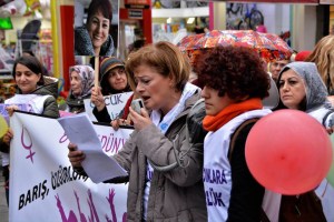 “Bugün dünyanın dört bir yanında ki kadınlarla alanlarda buluşarak daha adil, eşit ve özgür bir dünya için sözümüzü örgütlüyor, mücadelemizi yükseltiyoruz.