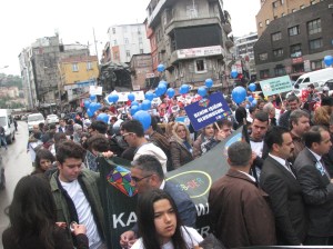 Madenci Anıtı’nda toplanan yaklaşık 200 kişi, ‘Her 50 kişiden 1’i otizmli’, ‘Birlikte başaralım engelleri aşalım’, ‘Benden sonra ne olacak’, ‘Farklı ama eksik değil’ yazılı dövizler taşıdı. Kalabalık, Gazipaşa Caddesi’ni takiben Valilik önüne kadar yürüdü. Zonguldak Vosvos Kulübü üyeleri de balon ve bayraklarla süsledikleri ‘Vosvos’ olarak bilinen eski Wolsvagen otomobilleriyle yürüyüşe destek verdi.