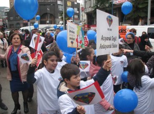 Madenci Anıtı’nda toplanan yaklaşık 200 kişi, ‘Her 50 kişiden 1’i otizmli’, ‘Birlikte başaralım engelleri aşalım’, ‘Benden sonra ne olacak’, ‘Farklı ama eksik değil’ yazılı dövizler taşıdı. Kalabalık, Gazipaşa Caddesi’ni takiben Valilik önüne kadar yürüdü. Zonguldak Vosvos Kulübü üyeleri de balon ve bayraklarla süsledikleri ‘Vosvos’ olarak bilinen eski Wolsvagen otomobilleriyle yürüyüşe destek verdi.