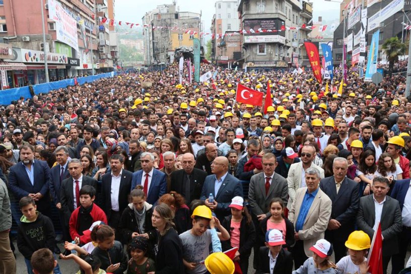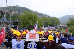 Konuşmalar sırasında “Yaşasın 1 Mayıs”, “Emeğin Başkenti Şanlı Zonguldak”, İşçi alınsın, üretim artsın”, “Yaşasın demokrasi mücadelemiz” sloganları atıldı.