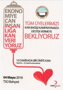 Geleneksel olarak yapılan Zonguldak Ticaret ve Sanayi Odası ‘’Kan Bağışı Kampanyası’’nın beşincisi 4 Mayıs Cuma günü ZTSO Bahçesinde 10.00 – 18.00 Saatleri arasında gerçekleşecek.