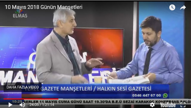 Susma Gazetesi Kurucusu, Yazı İşleri Müdürü Bahaddin Arı, Bugün (10 Mayıs) Elmas TV Genel Yayın Yönetmeni Atilla Öksüz’ün konuğu oldu. Her sabah gerçekleşen Günün Manşetlerinde bu kez Arı, Öksüz ile ekonomiden siyasete bir çok konuyu değerlendirdi