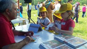 Arkadaşlarımız yarışmaya derinlik vermek için her yıl bir de yazar çağırıyorlar. Bu sene de beni çağırdılar. Bir yandan uçurtma heyecanı diğer yandan yazara kitap imzalatma… Ayrıca çocuklara dondurma, soğuk çay ikramları vardı. Kayıt yaptıran her çocuk şapka ve bir de katılım madalyası aldı.