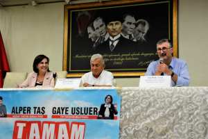 Daha sonra söz alan Haziran Hareketi Yürütme Kurulu Üyesi Alper Taş’da şu değerlendirmelerde bulundu; “AKP en büyük tokatı gezi isyanında, 2013 haziranında yedi.Öyle bir feleği şaştı ki hala daha kendini toparlayamadı. Dikkat edin 2013 Haziranından bu güne şöyle bir bakın, siyasal gelişmeleri bir inceleyin, aslında kazanan bir AKP yok kaybeden bir AKP var. İnandırıcılığını yitiren bir AKP ile karşı karşıya kaldığımızı görebilmek mümkün. AKP kazanıyor gibi görünüyor ama gerçek manada kazanamıyor. 24 Haziranda aslında bir dönemin sonuna geliyoruz. Biliyorsunuz gezide 2013 haziranında hep beraber, ülkenin her yerinde, onurumuza sahip çıktık, ayağa kalktık, özgürlük istiyoruz dedik ,yaşam alanlarımıza müdahale edemezsin dedik ,yukardan aşağıya bizi dizayn edemezsin ,kendi ideolojik yaşam tarzını bize dayatamazsın dedik. Sokakta büyük mücadele yürüttük ama doğrusunu söylemek gerekirse devamını getiremedik. Ardından 7 Haziran seçimleri yaşandı. Seni başkan yaptırmayacağız dedik ama devamını getiremedik. Sonra 16 Nisan’da yaşandı. Memlekette yukardan aşağıya devletin EVET’ine karşı ,biz aşağıdan yukarı HAYIR dedik. Halk hayır dedi, çoğunluk hayır dedi çok sesli hayır dedik, aslında sokakta ve sandıkta devletin evetini yendik ama YSK sayesinde hayırımızı gasp ettiler. Sonra hatırlayın 14 Haziran’da Kılıçdaroğlu önderliğinde, hak, hukuk, adalet diye yürüdük ama bununda devamını getiremek.
