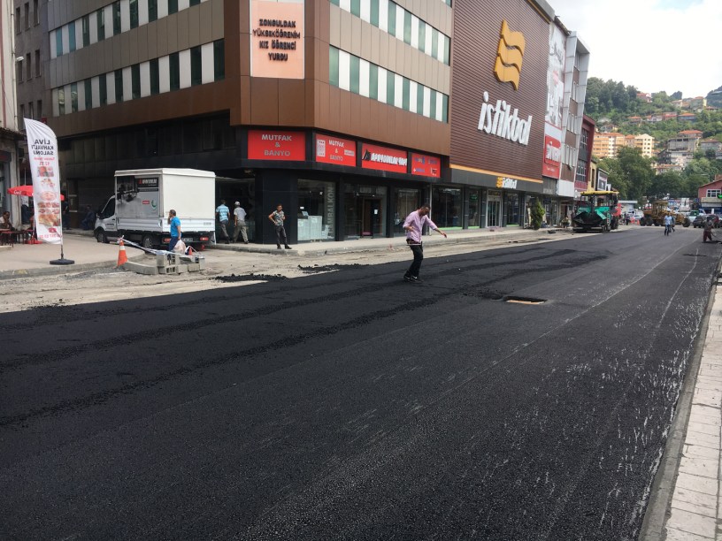 Zonguldak Belediyesi Fen İşleri Müdürlüğü ekipleri tarafından sıcak asfalt çalışmaları tüm hızıyla devam ediyor. İncivez Mahallesi ve Uğur Mumcu Kavşağı’nın ardından Acılık Caddesi’nde bugün itibariyle sıcak asfalt çalışmaları başladı. Şehrimizin büyük sorunları arasında yer alan altyapı çalışmalarını tamamlayan ekipler, Acılık Caddesi’nde sıcak asfalt çalışmalarına stard verdi. Ekipler, trafiğin yoğun olarak kullanıldığı Acılık Caddesi’nin asfalt çalışmalarını kısa süre içerisinde bitirmeyi hedefliyor.