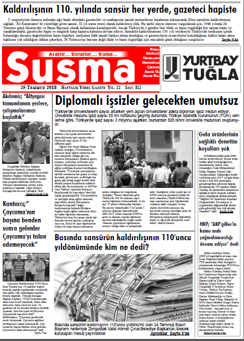 Susma Gazetesi’nin bu haftaki (25 Temmuz) Sayısını PDF olarak okuyabilirsiniz