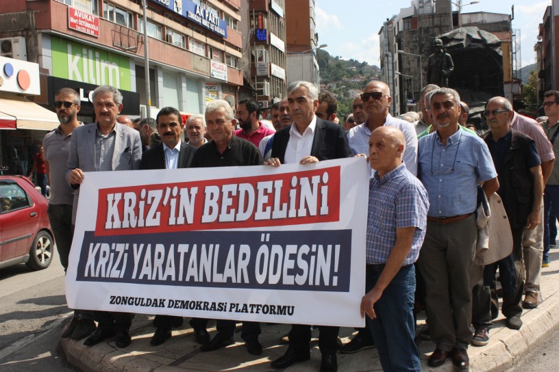 Zonguldak Demokrasi Platformu adına Konuşma yapan TMMOB Maden Mühendisleri Odası Şube Başkanı Yard.Doç.Erdoğan Kaymakçı, Ülkenin içine sokulan ekonomik kriz ile ilgili olarak, “Çözüm zamlarla halkı yoksullaştırmak değildir. Çözüm iş yaratmak, istihdam yaratmaktır. Çözüm her alanda üretimi desteklemektir. Çözüm özelleştirilen kamu kurumlarının yeniden kamusallaştırılmasıdır. Zonguldak demokrasi platformu olarak hükümeti uyarıyor ve krizin faturasını bize ödetemezsiniz diyoruz” dedi.