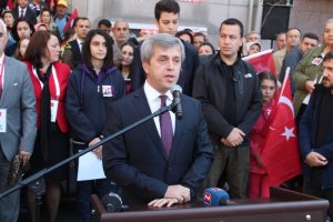 Bugün dost-düşman bütün dünya onun gerçekten büyük işler başardığını kabul ediyor. Çünkü hala onun yaptıklarını yıkamadılar, çünkü hala bizi onun yolundan ayıramadılar. Ancak üzülerek ifade ediyorum ki çok yol aldılar. Atatürk düşmanı kindar yeni nesiller yarattılar. Keşke savaşı Yunanlılar kazansaydı diyen yurttaşlarımız var. Padişahlığa özenenler var. Dahası ekonomimizi dağıttılar. Tam bağımsızlık hedefinden saptık. Şimdi cari açık ve dış borç baskısıyla emperyalist devletler bize kendi politikalarını dayatıyorlar. Yurtta barış, dünyada barış hedefinden saptık. Şimdi komşularımızda savaş var ve biz içindeyiz, komşularımız da bizim içimize göç etti. Emperyalist devletler bizi bir batağa sokmak ve kurtuluş savaşı öncesine taşımak için yeni senaryolar yazıyorlar. Zonguldak’ta bu süreci aynen yaşadı. Kurtuluş Savaş döneminde Mustafa kemal Atatürk ve arkadaşları, bölgemize ve madencilere sahip çıktılar. Zonguldak hızla büyüdü. 1924 yılında Cumhuriyet’in ilk ili oldu. Sonra sanayi şehrine dönüştü, emeğin başkenti oldu. Zonguldak üç il olacak kadar büyüdü, Türkiye kalkındı. Ama 1980, özellikle 1990 sonrası Zonguldak’ta hedef oldu. Zonguldak küçüldü, Türkiye borç batağına sürüklendi. Şimdi Cumhuriyetin 95’nci yılında Zonguldak’ın ve Türkiye’nin bir kurtuluşa, Cumhuriyet Halk Partisine ihtiyacı var. Zonguldak’ın ve Türkiye’nin, büyük önderin gösterdiği hedefe yürüyecek kadrolara ihtiyacı var. Bunu hep birlikte, halkımızla birlikte başaracağız”dedi
