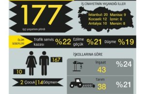 En çok iş cinayeti İstanbul, Kocaeli, Antalya, Manisa, İzmir, Mersin, Ankara, Elazığ, Kütahya, Muğla ve Şanlıurfa’da yaşandı.