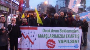 “İçinde bulunduğumuz ekonomik kriz koşullarında bir maaş gününü daha eylemle karşılıyoruz.
