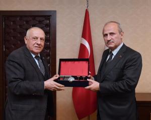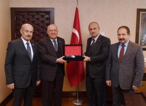 Ziyaret, Kardemir heyeti tarafından Bakan Turhan’a şirketin ürünlerinden oluşan bir masa seti takdim edilmesi ile sona erdi.