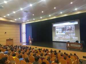 Astrofizikçi Dr. Umut Yıldız, gezegenlerin yapısı ve NASA’nın araştırma yöntemleri ile ilgili bilgiler verdiği konuşmasında, NASA’nın kullandığı teleskoplardan, ‘Derin Uzay’dan ve bu alanda yapılan çalışmalardan bahsetti. Öğrencilere tavsiyelerde de bulunan Yıldız, üniversite kulüp çalışmalarına katılmanın önemine değindi.