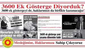 Eğitim Sen olarak, öğretmenlik mesleğini her bakımdan donanımlı ve çekici hale getirme, nitelikli öğretmen yetiştirilmesi için gerekli ortam ve olanakların sağlanması açısından 3600 ek gösterge uygulamasının çalışan ya da emekli ayrımı yapılmaksızın hayata geçirilmesi mücadelesine devam edeceğiz.