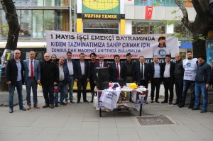 Zonguldak’lı vatandaşları 1 Mayıs’ta Madenci Anıtı’nda buluşmaya davet eden GMİS, etkinlik ile ilgili afiş, broşür, el ilanları ve GMİS Amblemli şapkaların dağıtımı ve çağrı anonsu için Stand açtı.