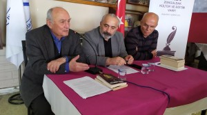 Etkinlikte söz alan Eğitimci yazar Hamit Kalyoncu ise Zonguldak’ın çok güçlü bir edebi birikime sahip olduğunu, bunu da yaptığı çalışmalarda gözlediği söylediği söyledi. Kendi derlediği kitapların yanı sıra Ahmet Naim’den bu ayana Zonguldak’ta madencilerin çileli yaşamlarını anlatan yazarları da anan Kalyoncu, başta ZOKEV ve GMİS olmak üzere kentteki sivil toplum örgütlerinin bu öyküleri bir kitapta toplaması gerektiğini dile getirdi. Konuşmaların ardından yazarla kitaptaki öykülerini okurlarına imzalarken, bol bol hatıra fotoğrafı çektirildi. Etkinliğin ikincisi Pazar günü Ereğli’de de yapıldı.