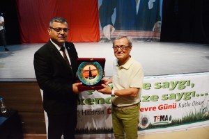 İkinci Dünya Savaşı sonrası, özellikle 1950’li yıllardan sonra ileri sanayi ülkelerinin izlediği her ne pahasına olursa olsun ekonomik büyüme politikası, dizginlenemeyen kar hırsı, kısa sürede çevre kirliliğinin yadsınamaz boyutlara ulaşmasına yol açtığını söyleyen Karababa, “Dünya tüm rezervlerini tüketmek üzere. Küresel ısınma hızla kendini hissettiriyor, iklim değişiyor. Hepimizin görebileceği bir gelecekte Karadeniz’de Akdeniz iklimi hakim olacak. Yasalarda herkesin, sağlıklı ve dengeli bir çevrede yaşama hakkına sahip olduğu yazıyor. Çevreyi geliştirmek, çevre sağlığını korumak ve çevre kirlenmesini önlemek Devletin ve vatandaşların ödevi olduğu belirtiliyor. Devlet, herkesin hayatını, beden ve ruh sağlığı içinde sürdürmesini sağlamak; insan ve madde gücünde tasarruf ve verimi artırarak, işbirliğini gerçekleştirmek amacıyla sağlık kuruluşlarını tek elden planlayıp hizmet vermekle yükümlü. Ancak bunların hiçbir yapılmıyor. Bu duruma karşı her vatandaşın barışçıl direnişler yapması lazım. Bu politikalara karşı harekete geçmediğimiz, itiraz etmediğimiz zaman gelecek kuşakların yaşama hakkı yoktur. İklim mültecileri diye bir kavram çıktı. Aşırı hava sıcaklıkları, seller, denizlerin yükselmesi gibi nedenlerle farklı kaynaklara göre 500 milyon-1 milyar insan daha uygun iklim koşullarının olduğu bölgelere göç edecek. Bu korkunç bir rakam. Direnmekten başka çaremiz yok. 15 yaşında İsveçli bir öğrenci, iklim eylemcisi 2019) Nisan’ında yaptığı Avrupa kentleri gezisi ile lise öğrencilerini İklim değişikliğini önleme konusunda boykot yaparak, yetişkinlerin ve politikacıların bir an önce harekete geçmesini sağlamaya davet etti. Bu çok dünyada çok etkili oldu. Birçok ülkede iklim eylemleri yapıldı. Zayıf da olsa Türkiye’de de etkileri görüldü. Ben bu eylemlerin çoğalmasının kurtuluşa bir adım olduğunu düşünüyorum” diyerek sözlerini tamamladı. Etkinliğin sonunda Çaycuma belediye Başkanı Vekili Cengiz Gökçe Karababa’ya günün anısına bir plaket sundu.