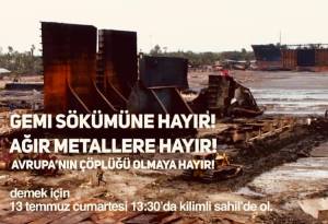 Zonguldak Kilimli İlçemizde yapımı planlanan Gemi Söküm Tesisi ile ilgili olarak görüşlerimizi açıklamak üzere, 13 Temmuz Cumartesi günü, Kilimli sahilinde, Belediye Sosyal Tesisleri ve Gönlü Ferah Restaurant önünde toplanarak Platformumuz tarafından bir basın açıklaması yapılacaktır.