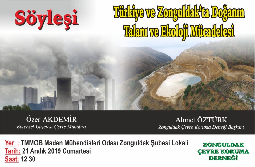 Zonguldak Çevre Koruma Derneği, “Zonguldak ve Türkiye’de doğanın talanı ve ekoloji mücadelesi” başlıklı bir söyleşi yapacak