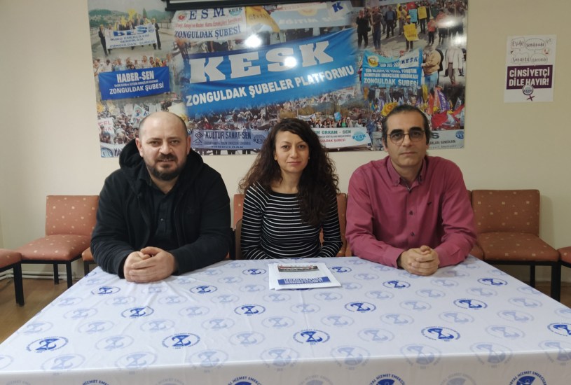 14 Mart Sağlık Haftası ile ilgili Sağlık ve Sosyal Hizmet Emekçileri Sendikası (SES) Zonguldak Şubesi basın açıklaması yaptı. KESK’e bağlı SES Zonguldak Şubesi açıklamasını, Eş Başkan, Döndü Temel ve Aytekin Aygün yaptı.