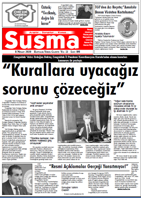 Susma bu hafta (8 Nisan)Salgın nedeniyle Susma Gazetesi’nin dağıtımı sınırlı sayıda yapılmaktadır. Bu nedenle bu sürede Gazetemizi PDF olarak dijital ortamda okumayı öneriyoruz.