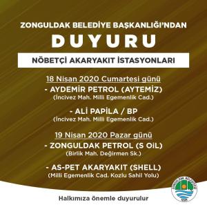 Zonguldak Belediyesi iki günlük sokağa çıkma yasağı nedeniyle merkez ilçede açık-nöbetçi noktaları açıkladı