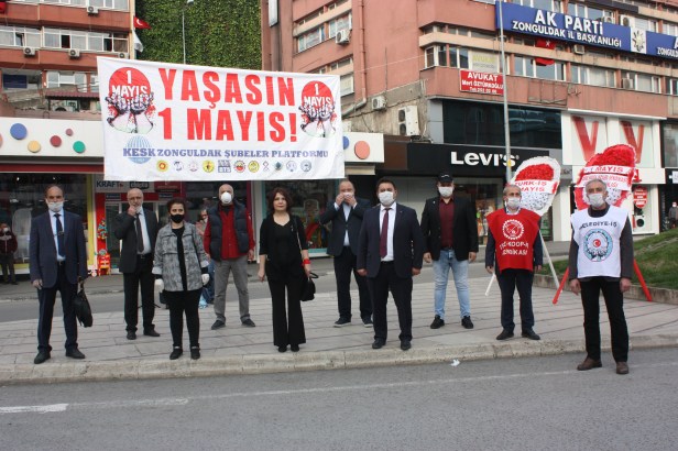 1 Mayıs Emek ve Dayanışma Günü kutlamaları bu yıl, Koronavirüs salgını tedbirleri kapsamında önlemler alınarak gerçekleşti.İçişleri Bakanlığı tarafından 1 Mayıs’ta alınacak sokağa çıkma kısıtlaması dolayısıyla 1 Mayıs İşçi Bayramı bugün kutlanıyor. Bu kapsamda Zonguldak Madenci Anıtı’nda program düzenlendi. KESK,DİSK,TMMOB,TTB ve Türk-İş’e ve Birleşik Kamu-İş’e Bağlı Sendikaların buluştuğu Zonguldak Madenci Anıtı’nda KESK,DİSK,TMMOB,TTB’nin ortak açıklamasını KESK’e Bağlı ESM Zonguldak Şube Başkanı Vacit Esen, Türk-İş’e Bağlı Sendikaların açıklamasını ise GMİS Genel Başkanı Hakan Yeşil okudu.