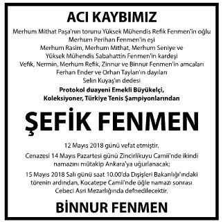 Şefik Fenmen kardeşlerinden en son hayatta kalan kişidir.O da 13 Mayıs 2018`de İstanbul`da hayata veda etmiştir.Ölmeden bir kaç sene önce Adnan Menderes ile yaşadığı uçak kazasını ilk defa anlatmıştır.