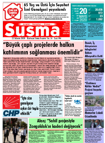 Salgın hastalık nedeniyle sınırlı sayıda, Susma’yı baskı ve dağıtım ağı ile okura ulaştırmaya çalışıyoruz, bu süreçte daha sosyalmedya, Facebook, WhatsApp,Twitter, hatlarından siz değerli Susma okurlarına,abonelerine ulaşmaya,SUSMAMA’ya çalışıyoruz.