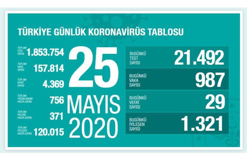 25 Mayıs: 987 vaka, 29 ölüm (21.492 test)