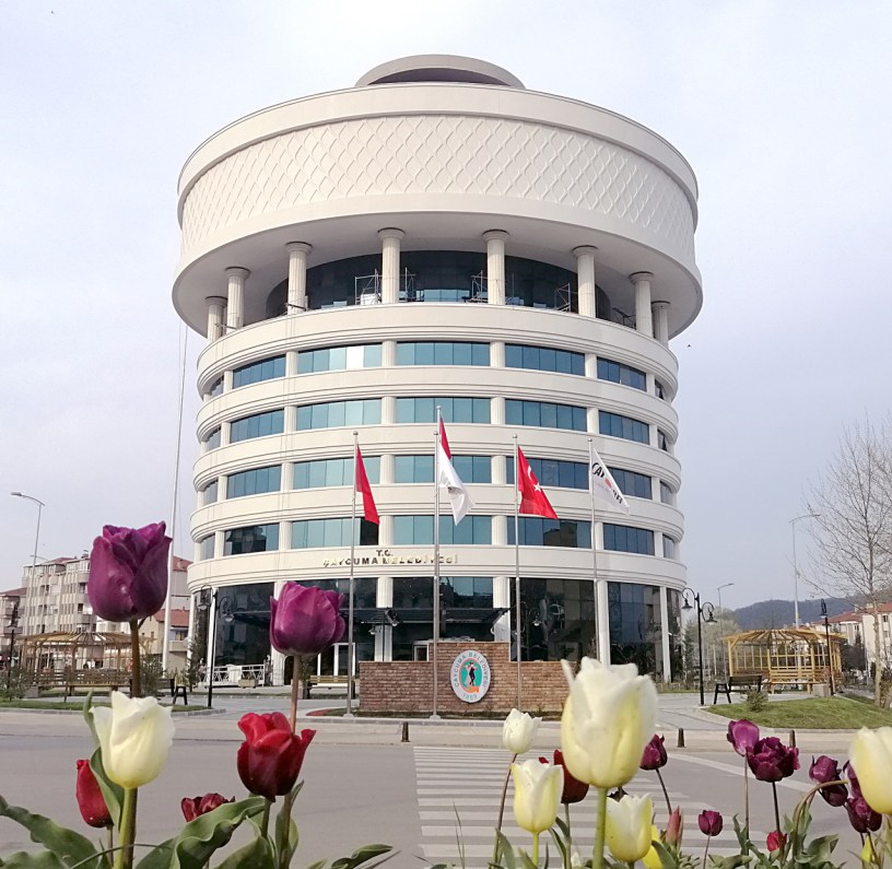 Çaycuma Belediyesinin yeni hizmete giren belediye binası birçok özelliği ile dikkat çekiyor. Silindirik formdaki mimarisi, işlevselliği ve işçilik kalitesi ile Çaycuma’ya değer katan bir eser olan bina, fonksiyonlarıyla da göz dolduruyor. Kompleks oluşturduğu B Blok’la birlikte, toplam 16 bin metrekare kapalı alana sahip bina, akıllı VRF sistemiyle, hiçbir müdahaleye gerek duymadan kendini soğutup ısıtabiliyor. Dahili haberleşme ve seslendirme, fiber kablo ile hızlı internet erişimi, akıllı aydınlatma sensörleri, uzak lokasyonlardan kontrol edilebilir özellikleriyle bir otomasyon harikası olan binanın 50 adet kamera ile de iç ve dış güvenliği sağlanıyor. Ofisleri birbirinden ayıran duvarlar hariç, dışı da dahil tüm cephelerinin camdan yapılması nedeniyle “saydam bina” diye anılıyor.