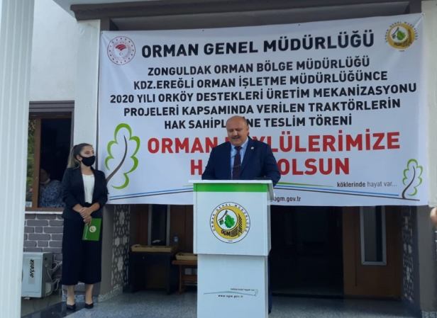 ORKÖY Daire Başkanı Hüdaverdi Şen, konuşmalarında geçmiş yıllarda verilen tüm kredi çeşitlerini, ünite ve parasal miktarlarını belirterek köylülerimizin yanında olduklarını ve artan miktarlarda da olmaya devam edeceklerini belirtti. Konuşmasının devamında “Zonguldak İlimizde 386 adet orman köyü vardır. Kdz.Ereğli Orman İşletme Müdürlüğü çalışma alanı içerisinde bulunan 142 adet ORKÖY kapsamındaki köyün 94’ü Ereğli’de, 48 tanesi Alaplı ilçesinde bulunmaktadır. ORKÖY faaliyetlerinin Orman Genel Müdürlüğüne devredildiği 2012 yılından bugüne kadar Köylülerimize; uygulanan farklı projelerle (Süt Sığırcılığı; Dış Cephe Mantolama, Süt Koyunculuğu; Arıcılık, Güneş Enerjisi, Plastik Seracılık, Üretim Mekanizasyonu vb.) verdiğimiz destek tutarı 10.828.000,00 TL’dir. Orman Genel Müdürlüğüne 2012 yılından itibaren devredilen ORKÖY faaliyetleri kapsamında, Ereğli Orman İşletme Müdürlüğünce 2020 yılı dâhil olmak üzere 9 yıllık bir zaman diliminde 98 köyde 982 aileye yaklaşık 10.828.000,00 TL. ORKÖY desteği sağlanmıştır. Bu ORKÖY desteklerinin %20’si yani yaklaşık 2.200.000 TL’si köylülerimize hibe olarak verilmiştir.