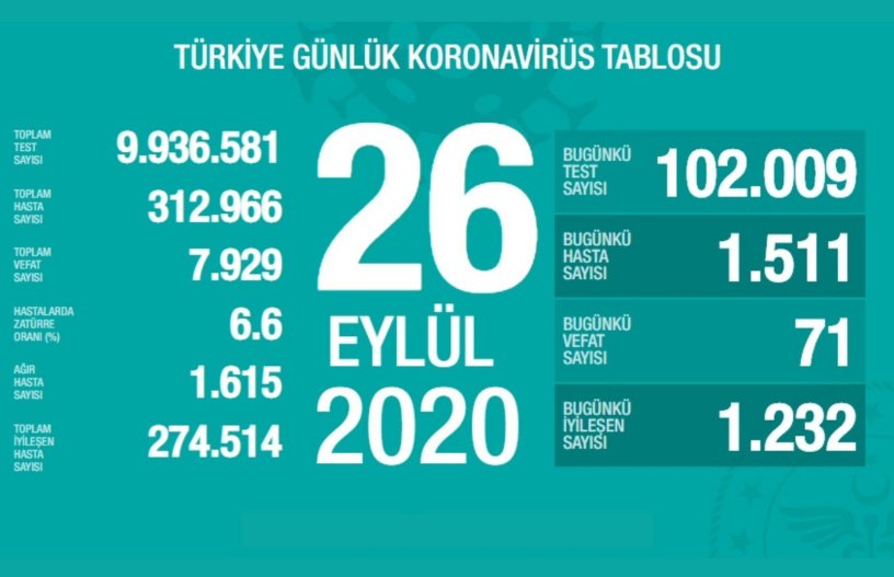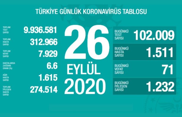 Son 24 saatte 1.511 yeni vaka tespit edildiği belirtilirken, 71 kişinin daha hayatını kaybettiği açıklandı. 1.232 hasta ise iyileşti.