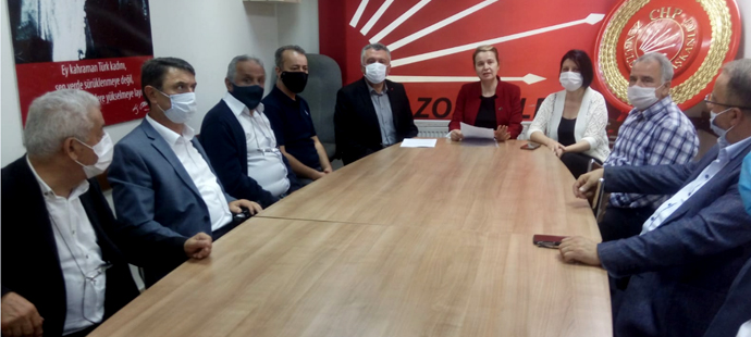 CHP Zonguldak il binasında düzenlenen basın açıklamasına; CHP İl Başkanı Murat Pulat, Merkez ilçe Başkanı Ebru Uzun, CHP İlçe Başkanları ile partililer katılırken, ortak basın açıklamasını CHP İl Sekreteri Serpil Akçin yaptı.
