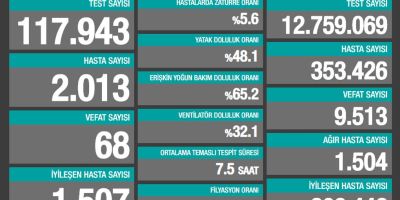 Son 24 saatte 2.013 yeni hasta, 68 ölüm