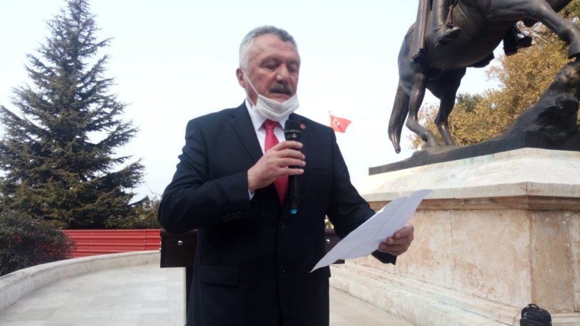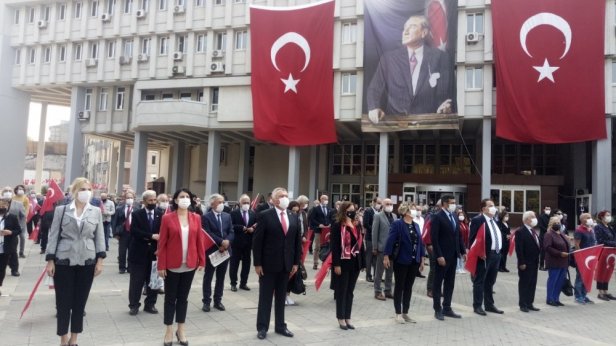 Saygı duruşunda bulunup İstiklal Marşı’nın söylenmesinin ardından Cumhuriyet Halk Partisi İl Başkanı Murat Pulat yaptığı konuşmada Cumhuriyetimizin kuruluşunun 97.yılını kutlayarak şunları söyledi: “Türkiye Cumhuriyeti Devletinin resmen kurulduğu 29 Ekim 1923’ün 97. yıl dönümünü kutluyorum. Aydınlanma önderi Mustafa Kemal Atatürk’ü kutluyorum. Cumhuriyetin bilinçli önderinin yanında yürüyen devrimci kadroyu, adsız kahramanları, onların sarsılmaz ahlaklarını, dürüstlüklerini, cesaretlerini, azimlerini kutluyorum. Her alanda tam bağımsızlığı, özgürlüğü, ulusal egemenliği ve çağdaşlaşmayı amaçlayarak başlatılan Kurtuluş Savaşı, Atatürk’ün başkomutanlığında, açlıkla, yoklukla, yorgunlukla, terle, kanla, silah sesleriyle barut kokularıyla kazanılarak Türkiye’de Cumhuriyet ilan edilmiştir. Temelinde “Demokratik, laik ve sosyal hukuk devleti” anlayışı olan Cumhuriyetimize karşı yapılan sistemli saldırılar 29 Ekim 2020 de; yetkileri daraltılmış Meclis, emir altına sokulmuş hukuk, tarikatlara bırakılmış eğitim, ulus bütünlüğü yerine etnik kökene, mezheplere dayalı bölünme, yaşamın her alanında yapılan din sömürücülüğü, satılarak tüketilmiş vatan toprakları, satılarak yok edilmiş fabrikalar-üretim kurumları ile halka dayatılmış Tek Adam rejimi olarak artarak devam etmektedir. Biz bu vatanın geleceğinin sahipleriyiz. Atatürk‘ün önderliğinde büyük Türk Milleti‘nin kanı, canı ve sonsuz emekleriyle kurulan Cumhuriyet‘in, tüm değerleriyle sonsuza değin yaşatılması hepimizin vazgeçilmez ortak sorumluluğudur. Türkiye Cumhuriyetimizin kurucusu Ulu Önder Gazi Mustafa Kemal Atatürk ve silah arkadaşlarını rahmetle anıyorum, gazilerimize şükranlarımı sunuyorum. Yaşasın Cumhuriyet!”