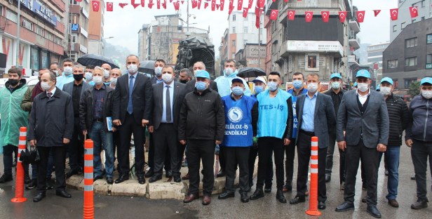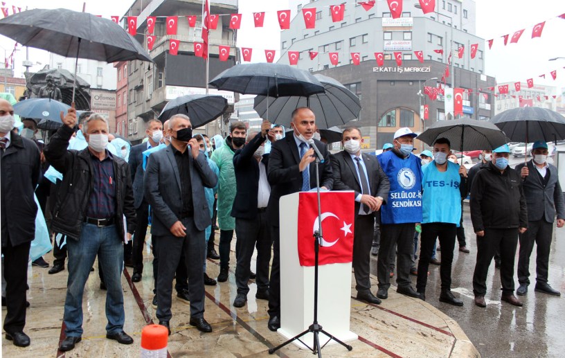 Emeğin Başkenti Zonguldak’ta Madenci Anıtı’nda yağmur altında düzenlenen TÜRK-İŞ’in basın açıklamasını Genel Maden İşçileri Sendikası (GMİS) Genel Başkan Yardımcısı İsa Mutlu yaptı.